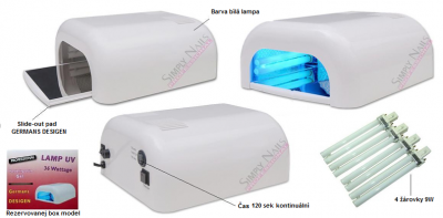 UV LAMPA 36W + 4 ŽÁROVKY VSADĚ 1ks Bílá a elegantní lampa, spolehlivá, 2 časové režimy 120 s - nepřetržitý čas
